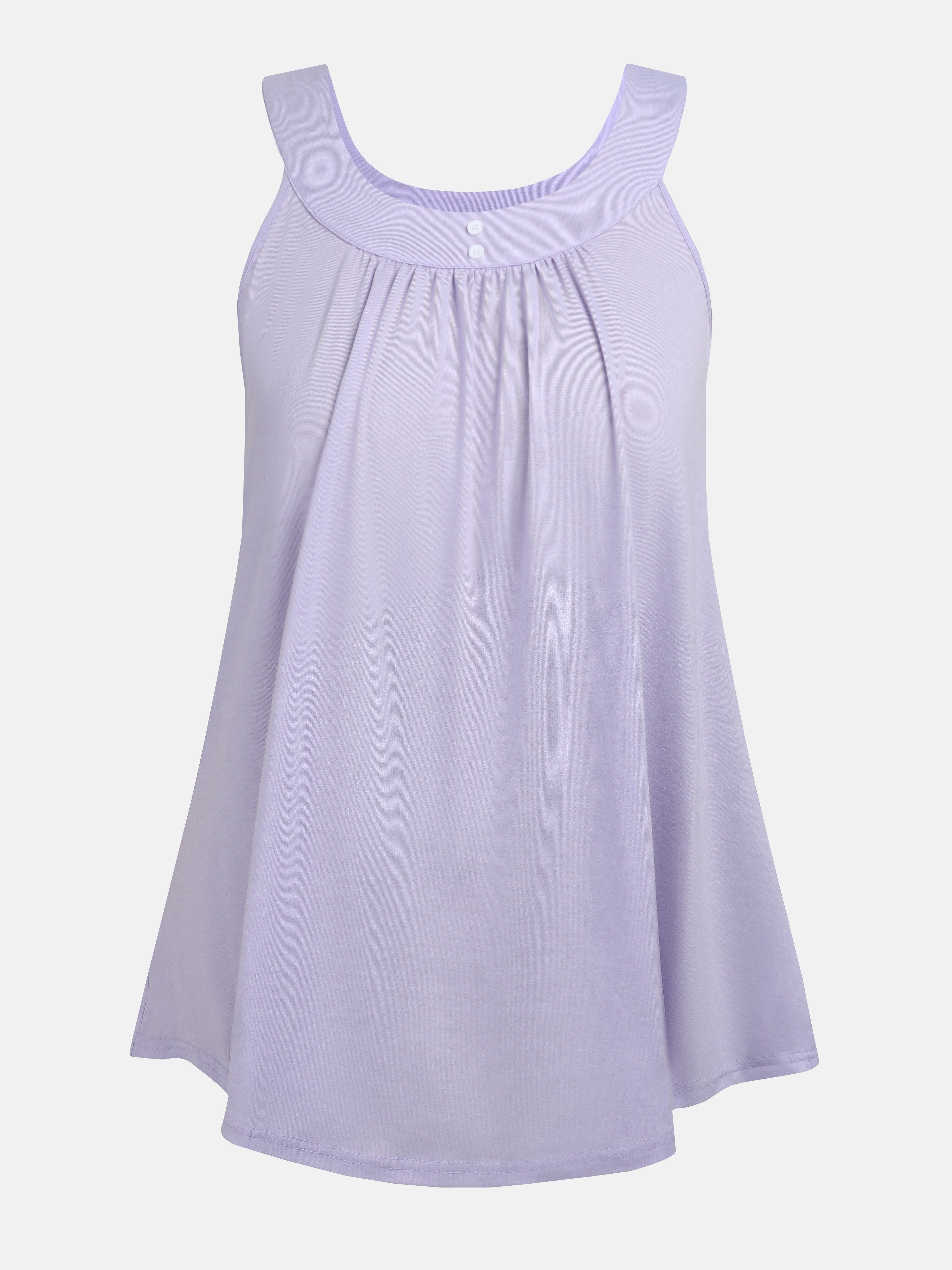 Plus Size Solid Color Tank Top with Fashionable Button Detail - Flattering Curve Hemline & Medium Stretch - Classic Crew Neck for Curvy Womens Summer Style