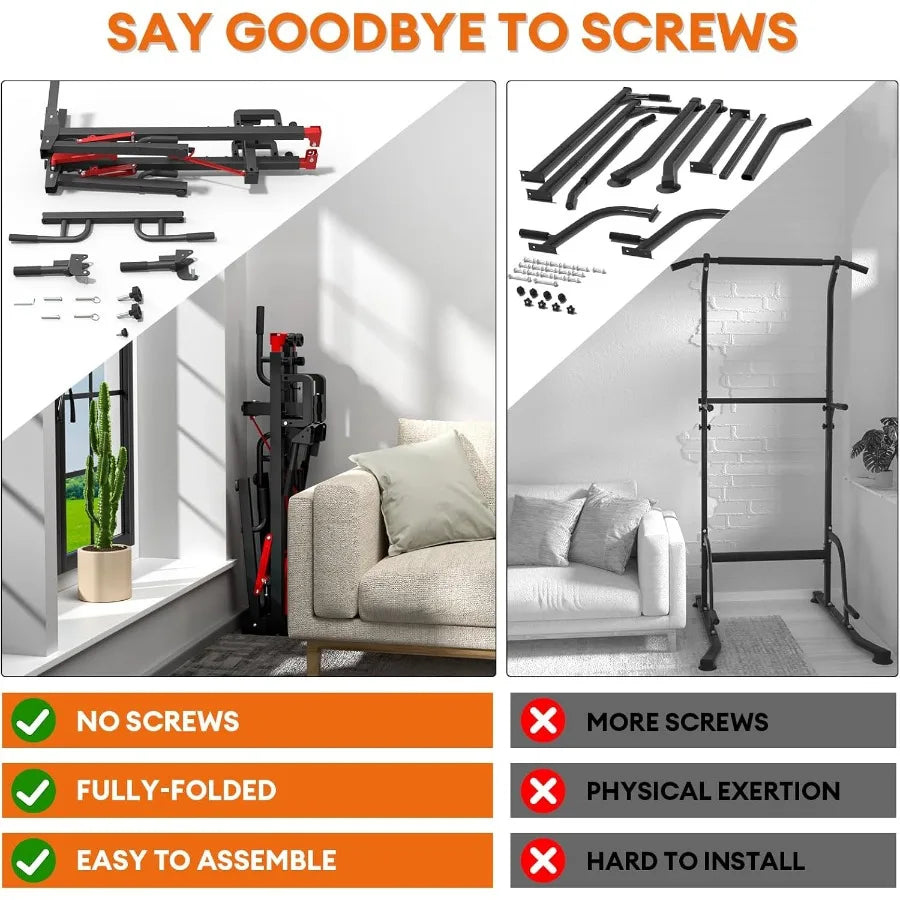 Foldable Power Tower Pull Up Bar Station, Multi-Function Adjustable Height Dip Station for Home Gym Workout, Strength Training F